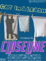 Cat on a Leash is a team of energetic weirdos who combine elements of short-form and long-form comedy improv to create a dynamic, fast-paced, immersive performance called Closeline.
